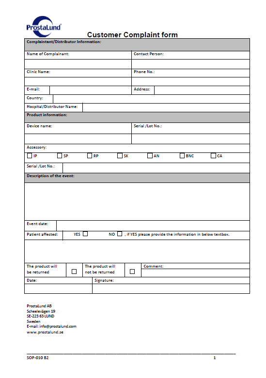 Eller maila: complaint@prostalund.com